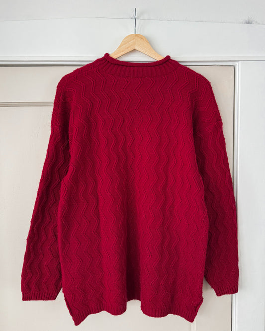 Vintage Red Knitted Mock Neck Sweater