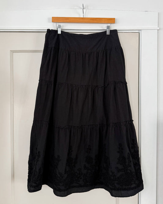 Black Tiered Maxi Skirt Floral Details