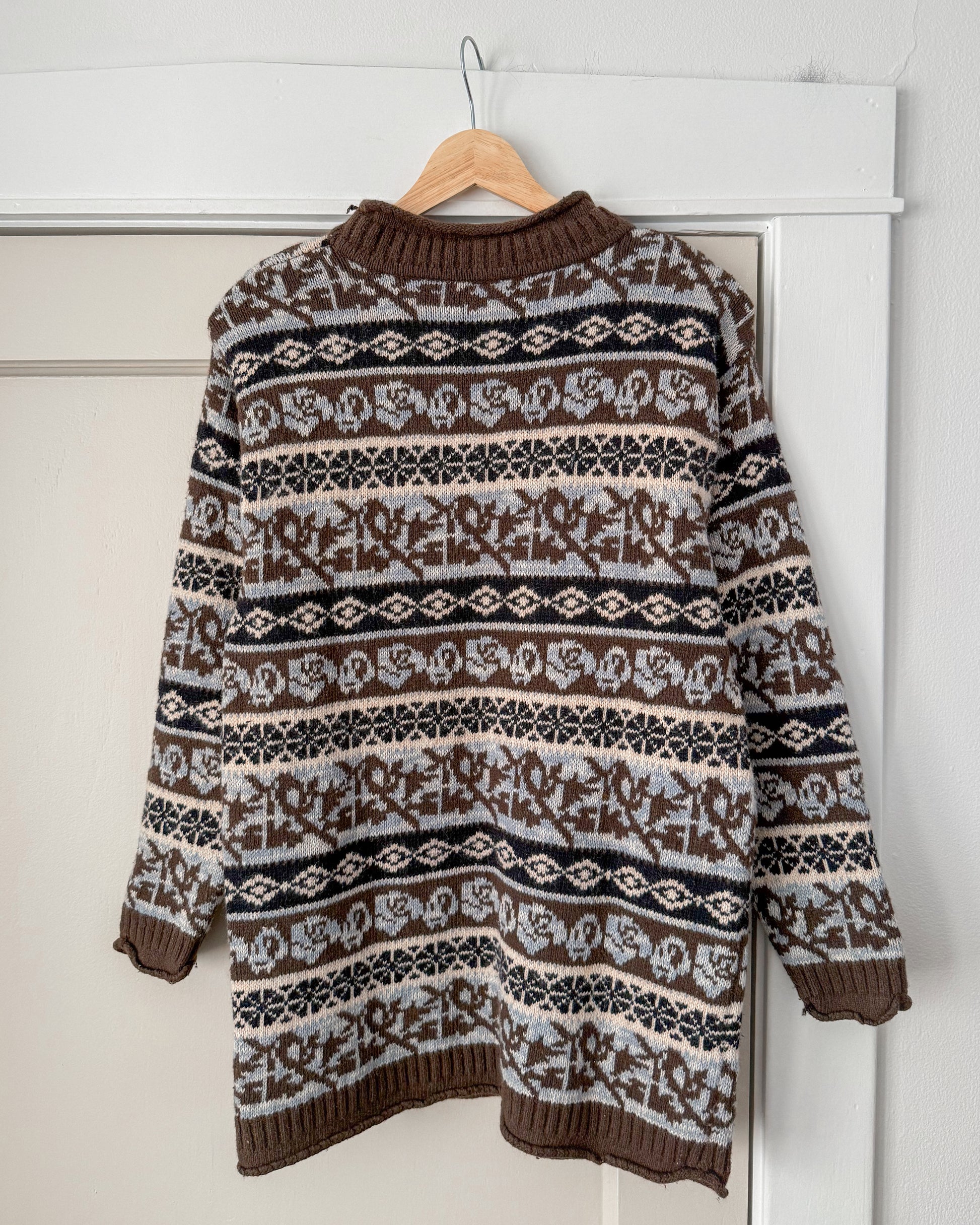 Mock Neck Multi Patterned Knitted Sweater