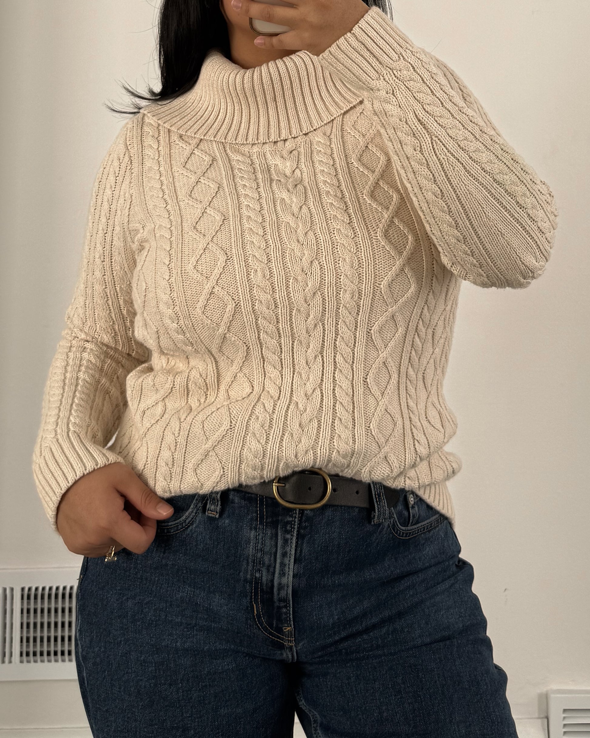 Cotton Cable Knit Turtle Neck Sweater