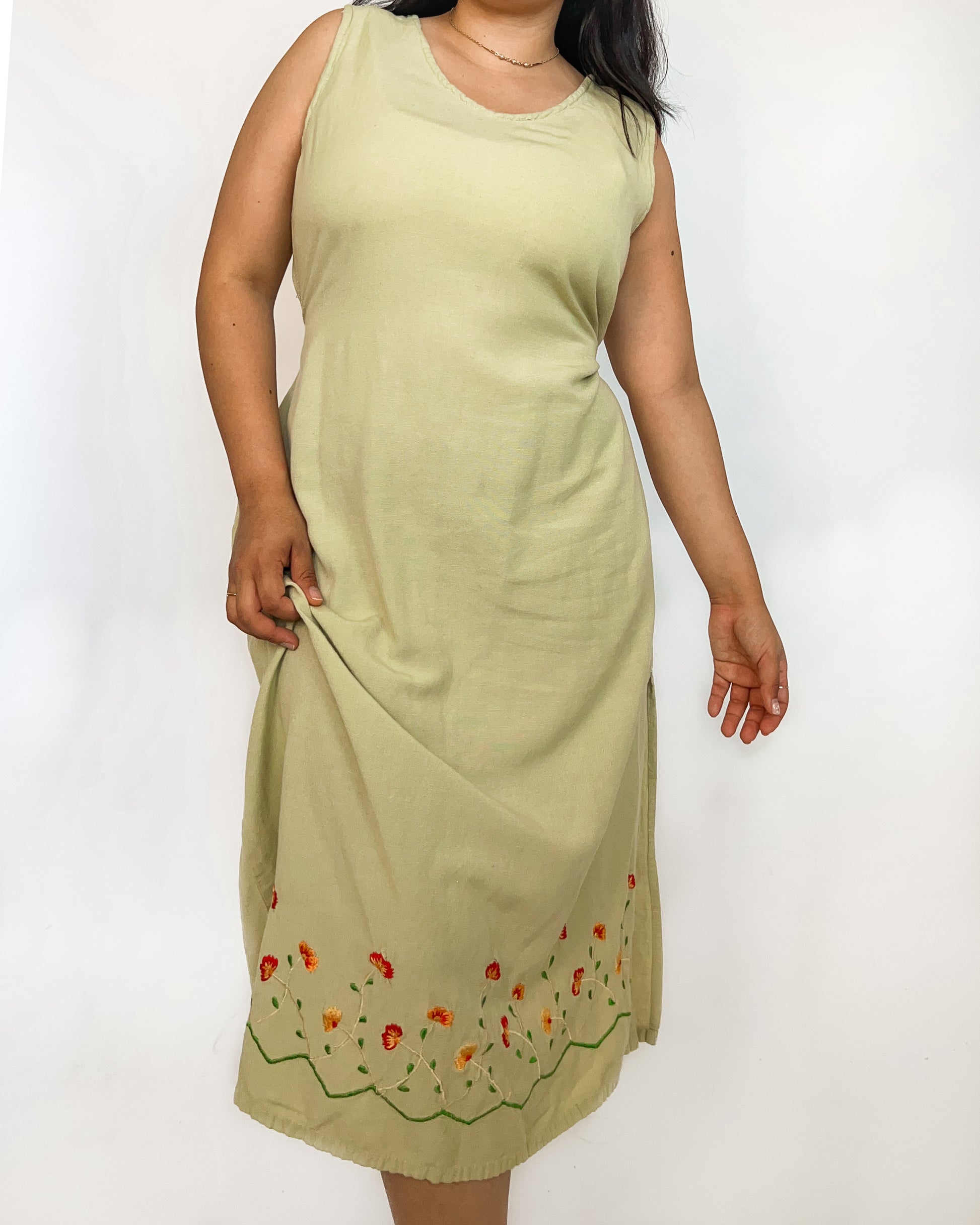 Matcha Floral Embroidered Maxi Dress